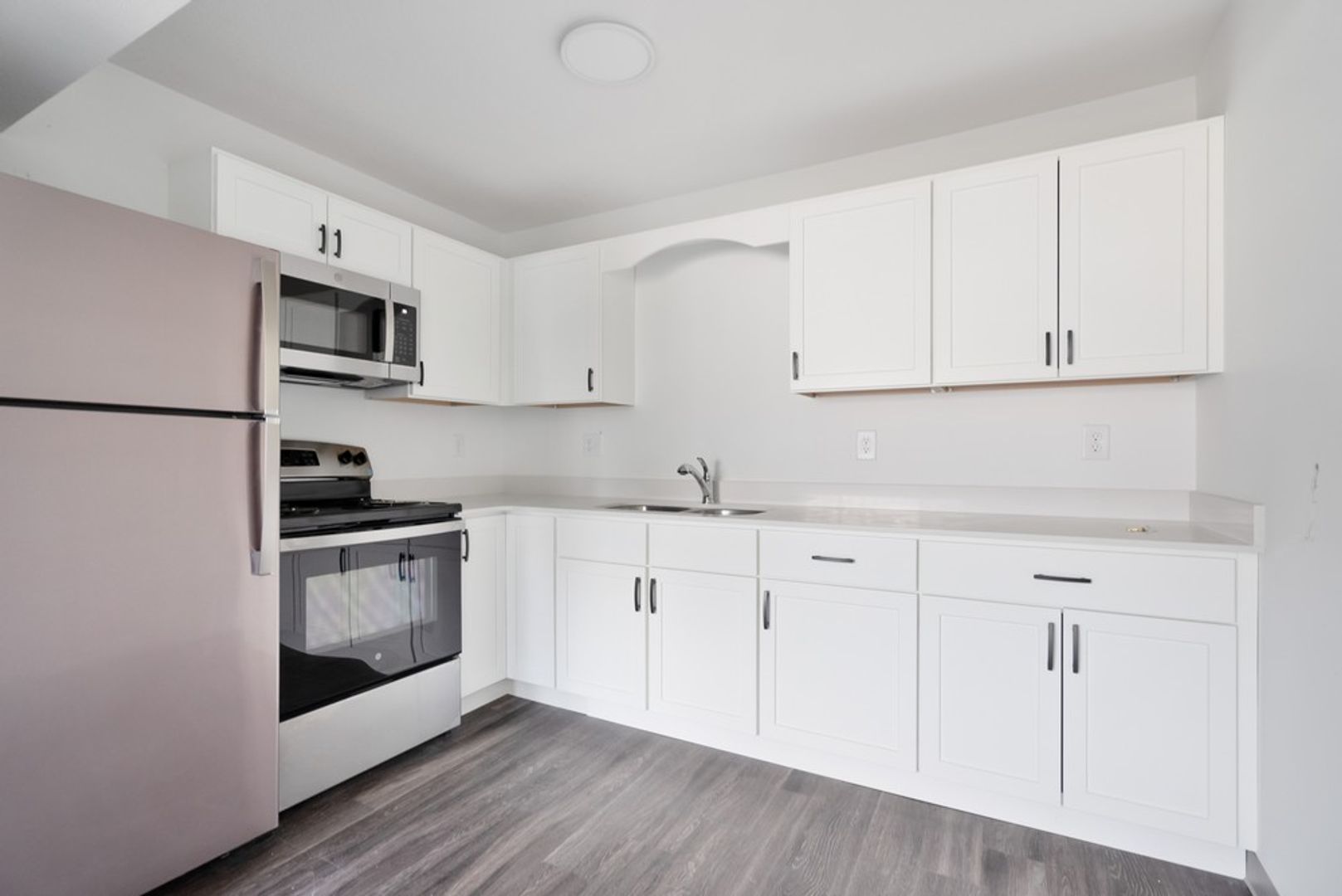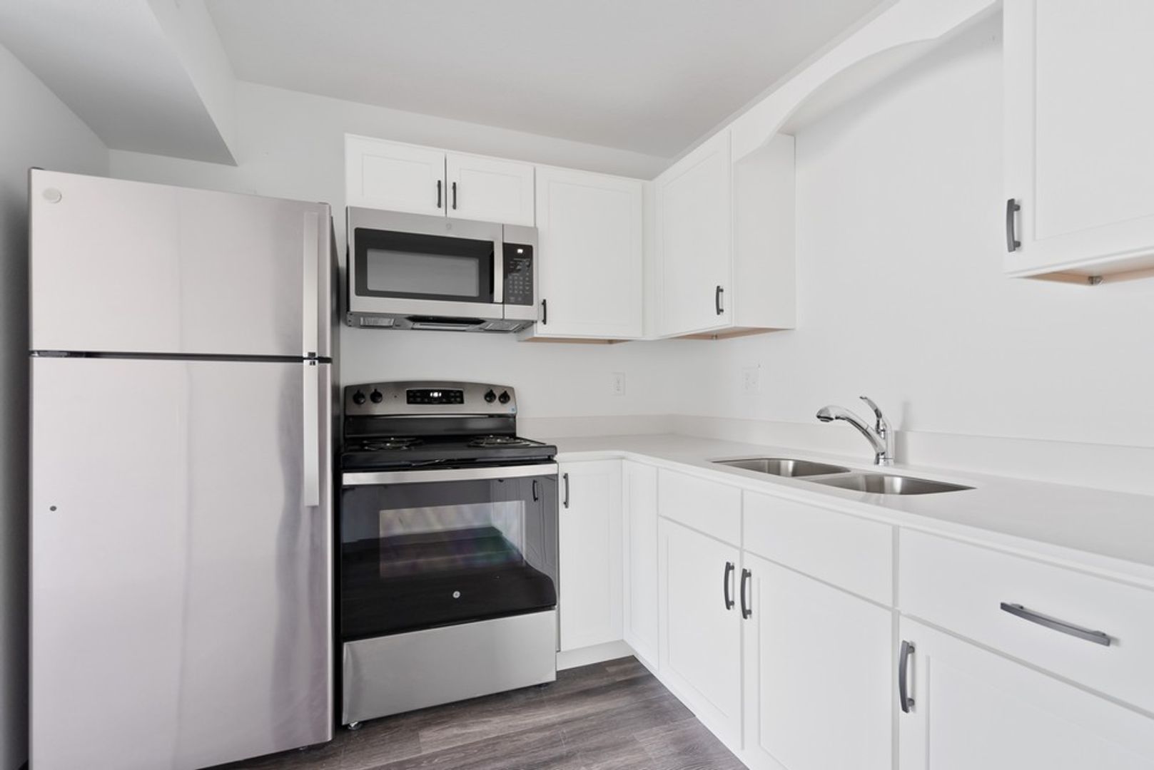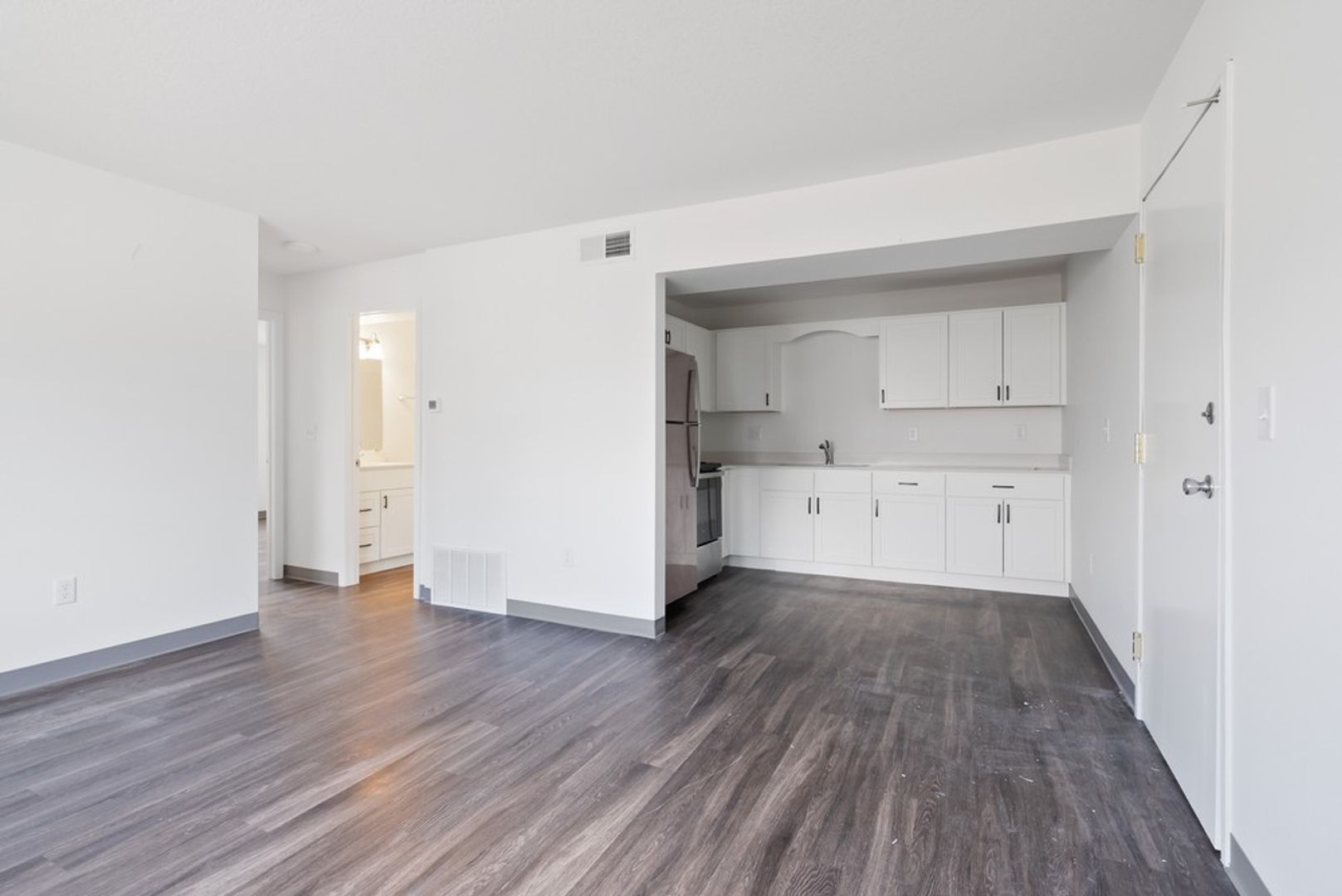 The apartment features LVP flooring, brand new stainless appliances, new cabinetry, a bathtub, shower, and walk-in closets. With secured entry and surface parking, you can feel safe and secure in your new home.